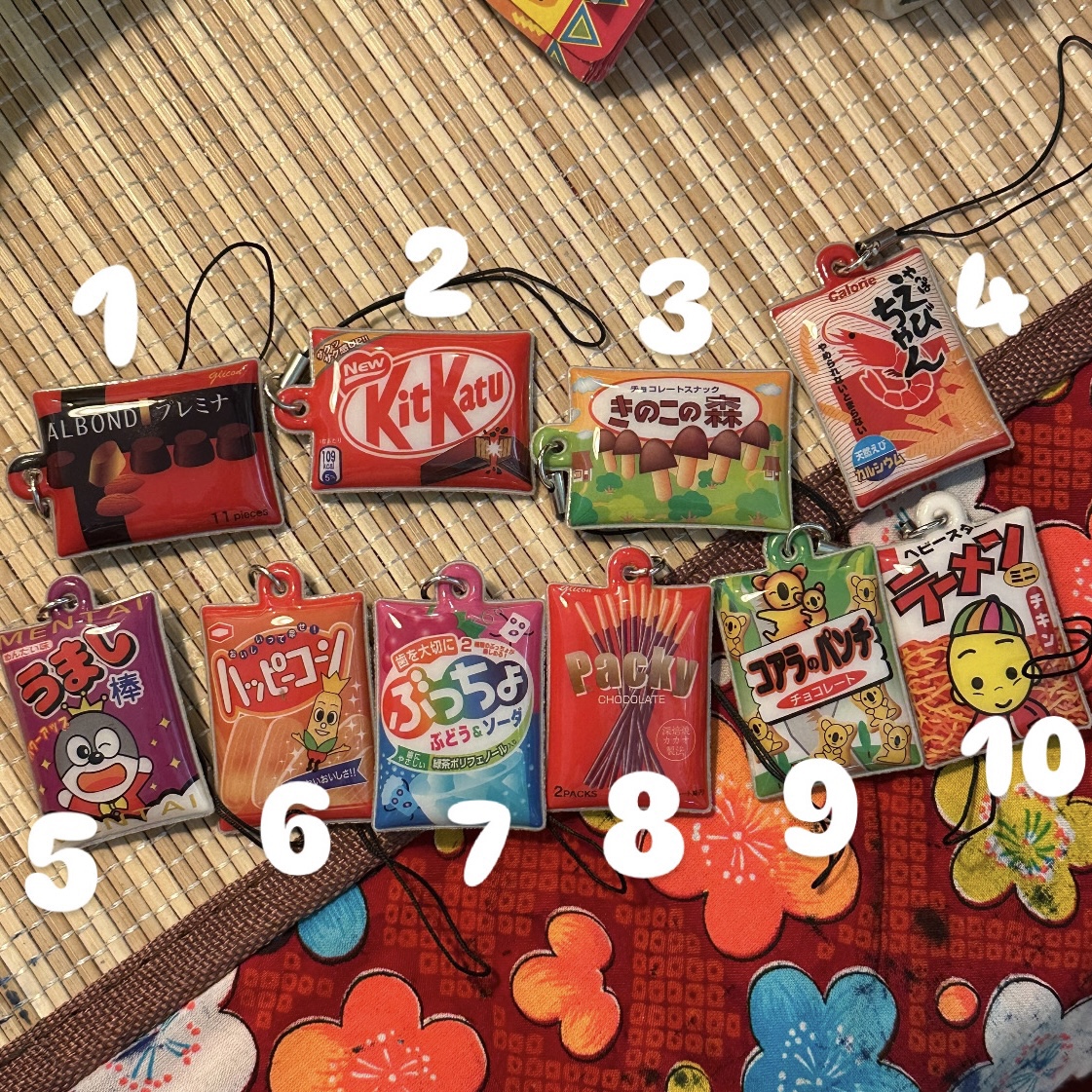 10종류의 일본 과자 모양 핸드폰 액정 필름을 닦아서 청소하는 키링입니다!